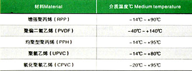 1.適用于腐蝕介質的輸送及截流、流量的調節,根據材質不同使用溫度-14℃~100℃、-40℃~140℃。